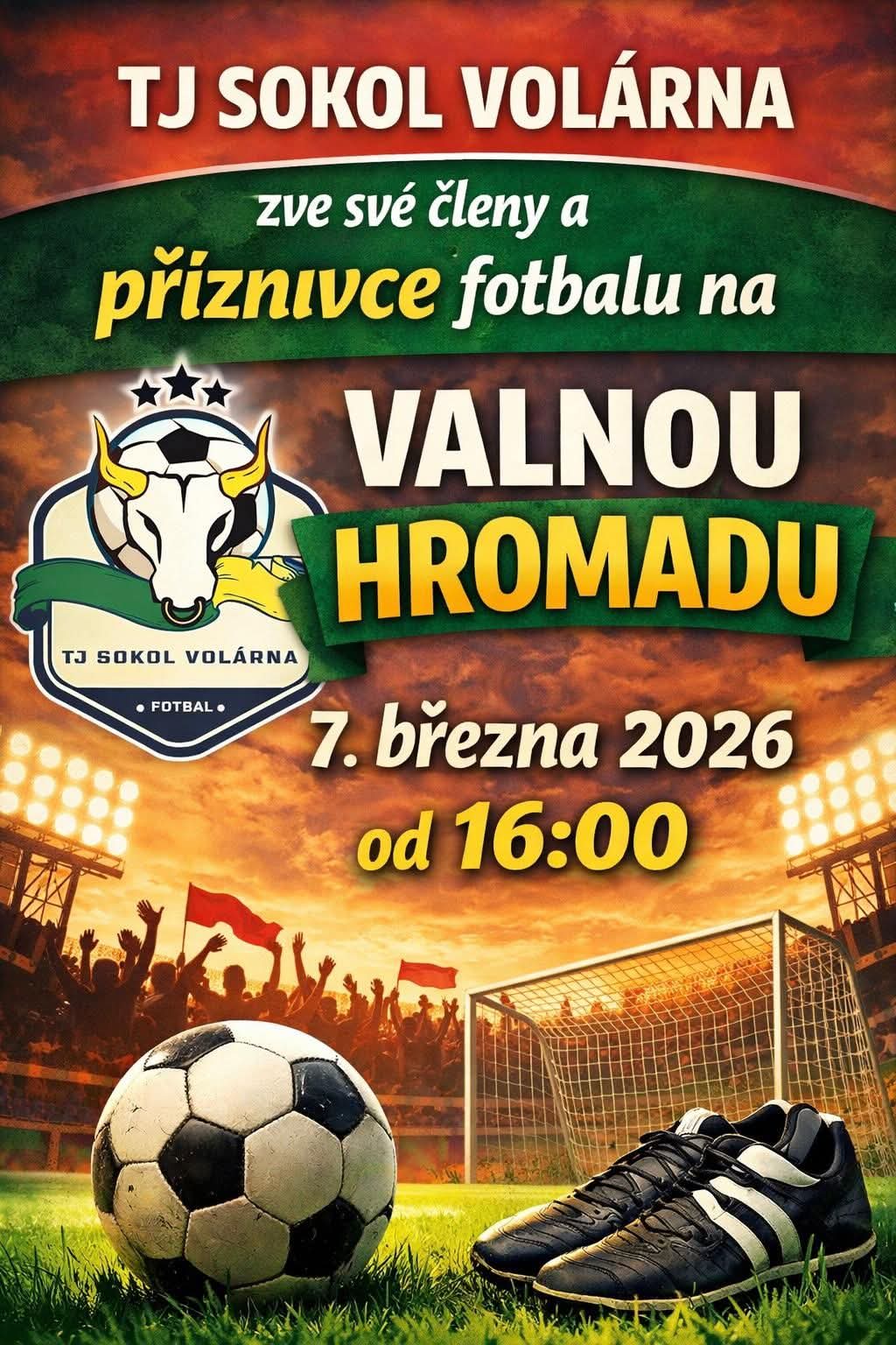 TJ Sokol Volárna zve své členy a příznivce fotbalu na VALNOU HROMADU.